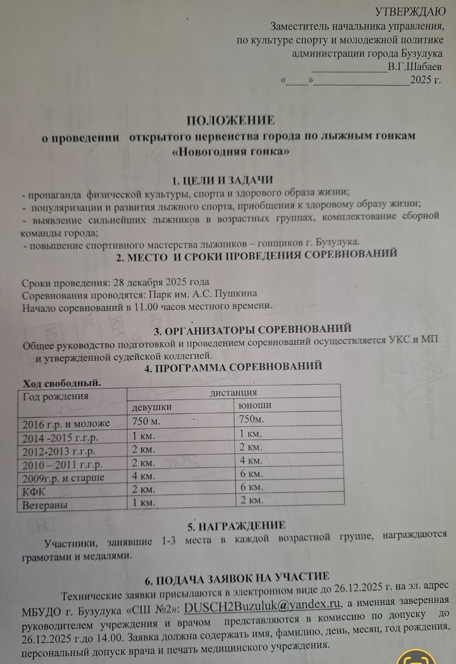 С 16 по 18 января 2026 года прошел Чемпионат и финал кубка области по лыжным гонкам среди городов и районов на приз летчика - космонавта, дважды героя Советского союза Ю.Романенко. В соревновании приняло участие более 180 спортсменов из разных городов и районов нашей области. По итогам трех дней соревнований команда г.Бузулука заняла первое место , команда г.Оренбурга - СШОР - второе место, команда г.Кувандык - третье место. Команда Бузулукского района - первое место, команда Оренбургского района - второе место, команда Асекеевского района - третье место. 16.01.2026 г. Спринт 2007 г.р. и старше 1. Злобина Елена (Бузулукский район), Зианбердин Искандер (Бузулук); 2. Карпова Дарья (Бузулук), Аршинов Иван(Бузулук); 3. Гурьянова Ксения (Асекеевский район), Иванов Константин (Оренбург). 2008 - 2009 г.г.р. 1. Полещук Анна (Оренбург), Невдаха Максим (Оренбург); 2. Власова Дарья (Орск), Федоров Илья (Бузулук); ... Читать дальше » |